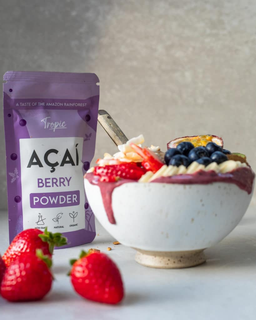 Þessi dökkfjólubláu ber sem eiga rætur sínar að rekja til Amazon regnskógarins hafa náð miklum vinsældum síðustu ár. Berin eru þekkt fyrir háan andoxunarstuðul en acaí ber eru talin búa yfir 3x meira magni af andoxunarefnum en til dæmis bláber. Duftið er fíngert og hentar vel í þeyting, chia graut eða jógúrtina fyrir aukin vítamín og steinefni. Það sem er í uppáhaldi hjá Tropic teyminu eru acaí skálar.UPPSKRIFT AF ACAÍ SKÁL