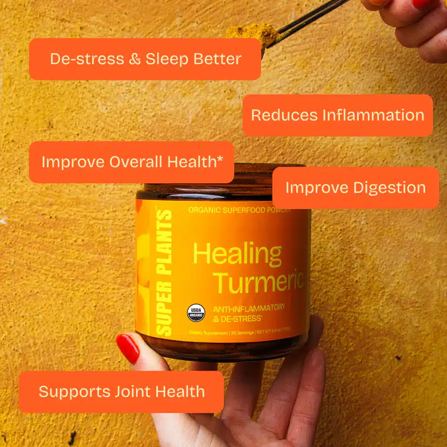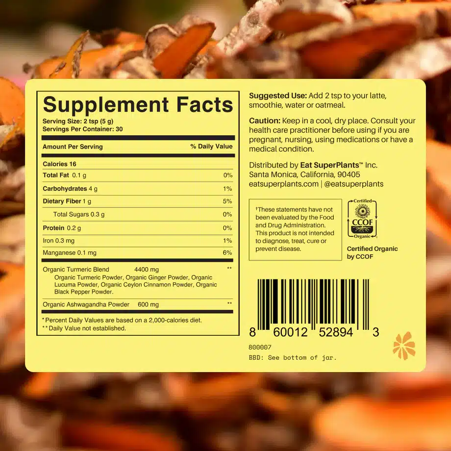 Healing Turmeric frá SuperPlants inniheldur túrmerik, engifer, lucuma, ceylon kanil, svartan pipar og ashwagandha. Þessi 100% lífræna ofurblanda sameinar forna lækningafræði Ayurveda við nútímavísindi til að skapa vöru sem skilar raunverulegum árangri.
