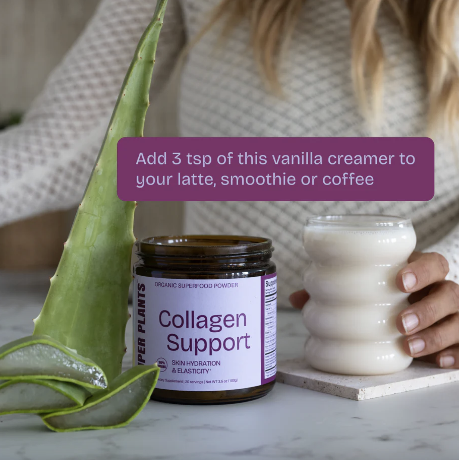 Þessi bragðgóði vanillu „creamer“ styður náttúrulega kollagenmyndun líkamans með hjálp öflugra plantna.